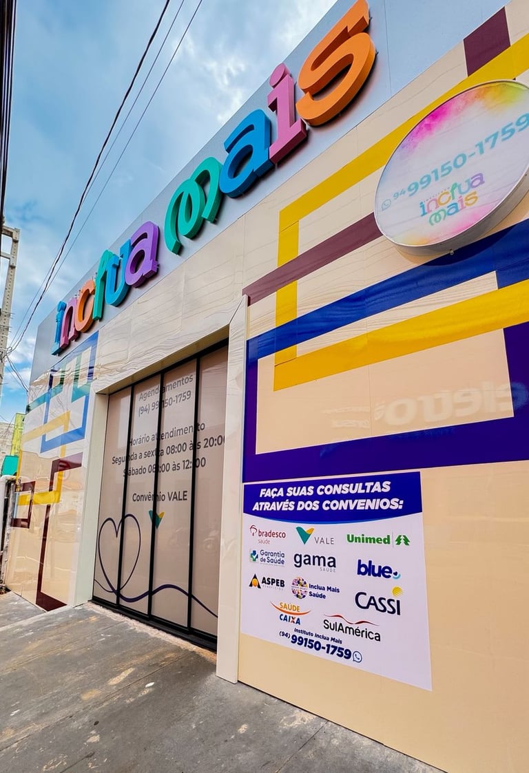 "O Instituto Inclua Mais, localizado em Canaã dos Carajás, é referência em saúde, desenvolvimento e inclusão para crianças Neurodivergentes. Oferecemos atendimentos humanizados e multidisciplinares com foco na qualidade de vida, no bem-estar e na evolução contínua de cada paciente. Contamos com uma equipe completa de profissionais especializados nas áreas de: - Neurologia - Terapia Ocupacional - Fonoaudiologia - Psicologia Infantil e Adulto - Fisioterapia Infantil e Adulto - Nutrição - Pilates em grupo - Laudo Neuropsicológico - Pacotes de Terapias Personalizadas